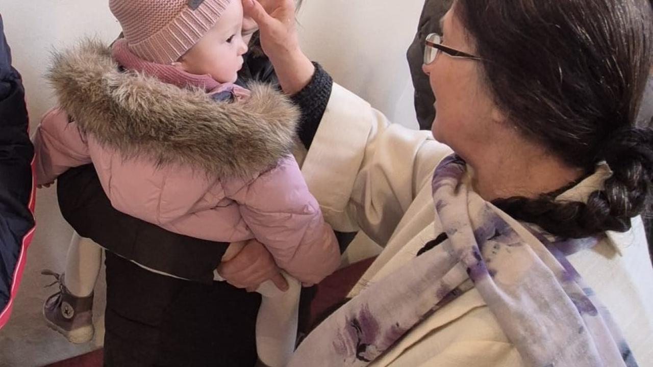 Bis auf 2 Kinder erschienen alle geladenen Täuflinge zur Segnung. Bei der kindgerechten familiären Veranstaltung erhielten alle Kinder von Leopoldine Scharinger den Segen.